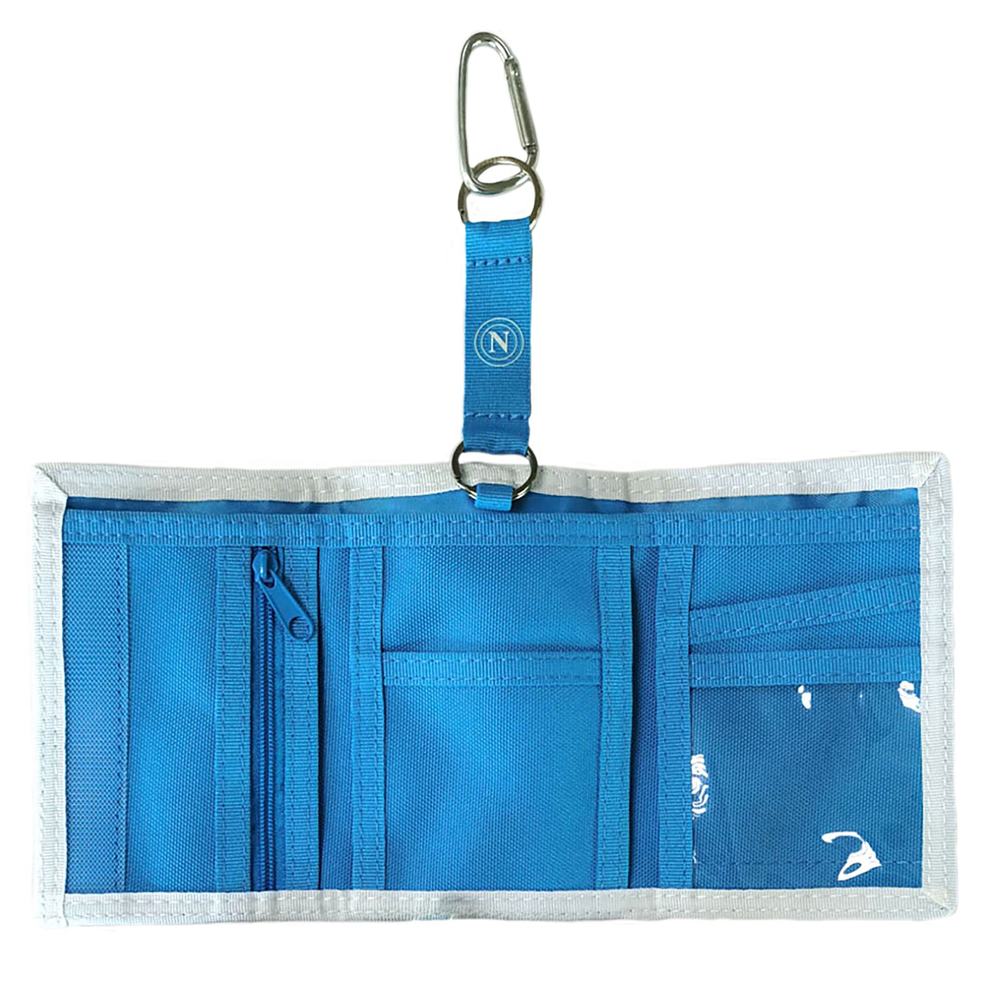 PORTACHIAVI PORTAMONETE IN TESSUTO CELESTE CON MOSCHETTONE STAMPA BIFACCIALE