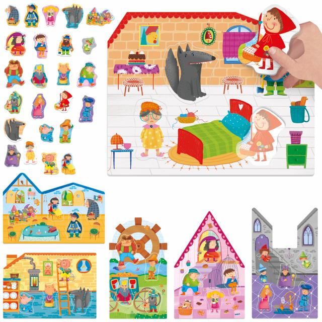 Qual è la casetta di Cappuccetto Rosso? E dove vivono i Tre Porcellini? Le fiabe sono un mondo tutto da esplorare: divertiti a osservare i protagonisti e a posizionarli negli spazi corrispondenti. In più, inventa una storia a tua fantasia!