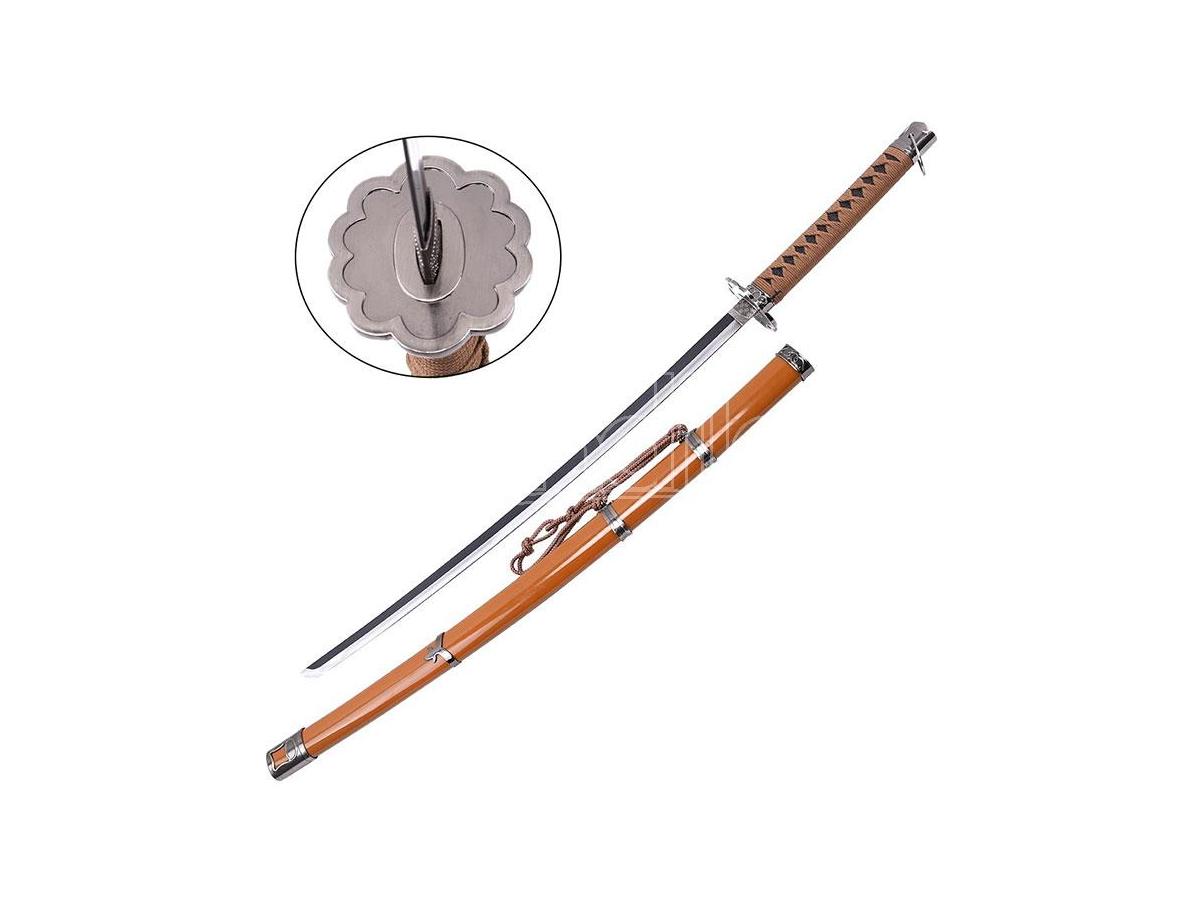 Katana ispirata alla serie sekiro shadows die twice. Lama in acciaio al carbonio, tsuba in metallo, fodero e impugnatura in legno con parti metalliche. Lunghezza totale 980mm (1030mm con fodero) Lunghezza lama 680mm Peso 770g (1040g con fodero) Oggetti ornamentali/riproduzioni di armi antiche.