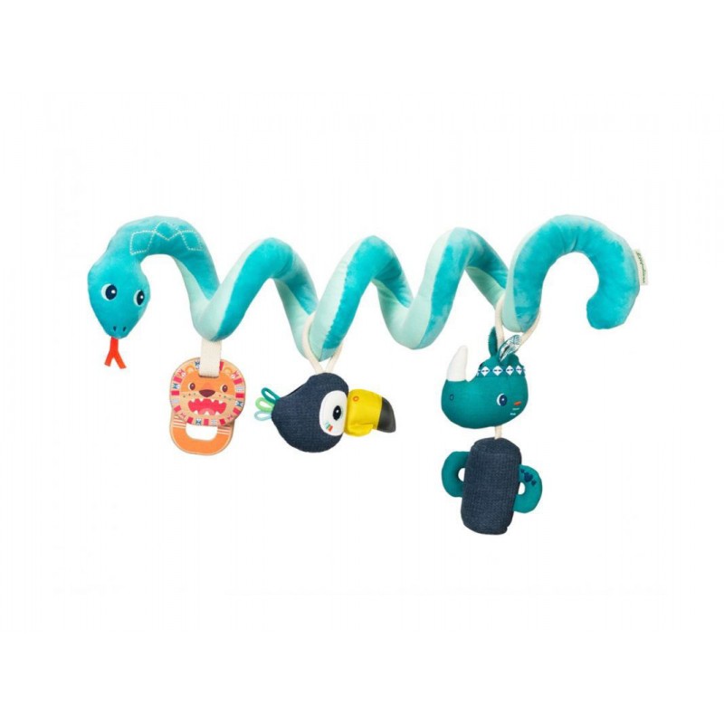 Suoni e tessiture sorprendenti, colori contrastanti..., questa spirale offre un ventaglio di attività per stimolare i sensi del bambino durante la passeggiata o l’escursione in macchina. Si fissa facilmente al seggiolino, al box o all’arco da giochi.