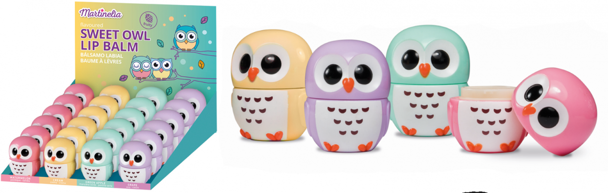 Un balsamo delicato per labbra morbide e idratate, a forma di simpatico gufo. Disponibile in 4 colori, ognuno con un gusto e un profumo diverso. Età consigliata: +3 anni