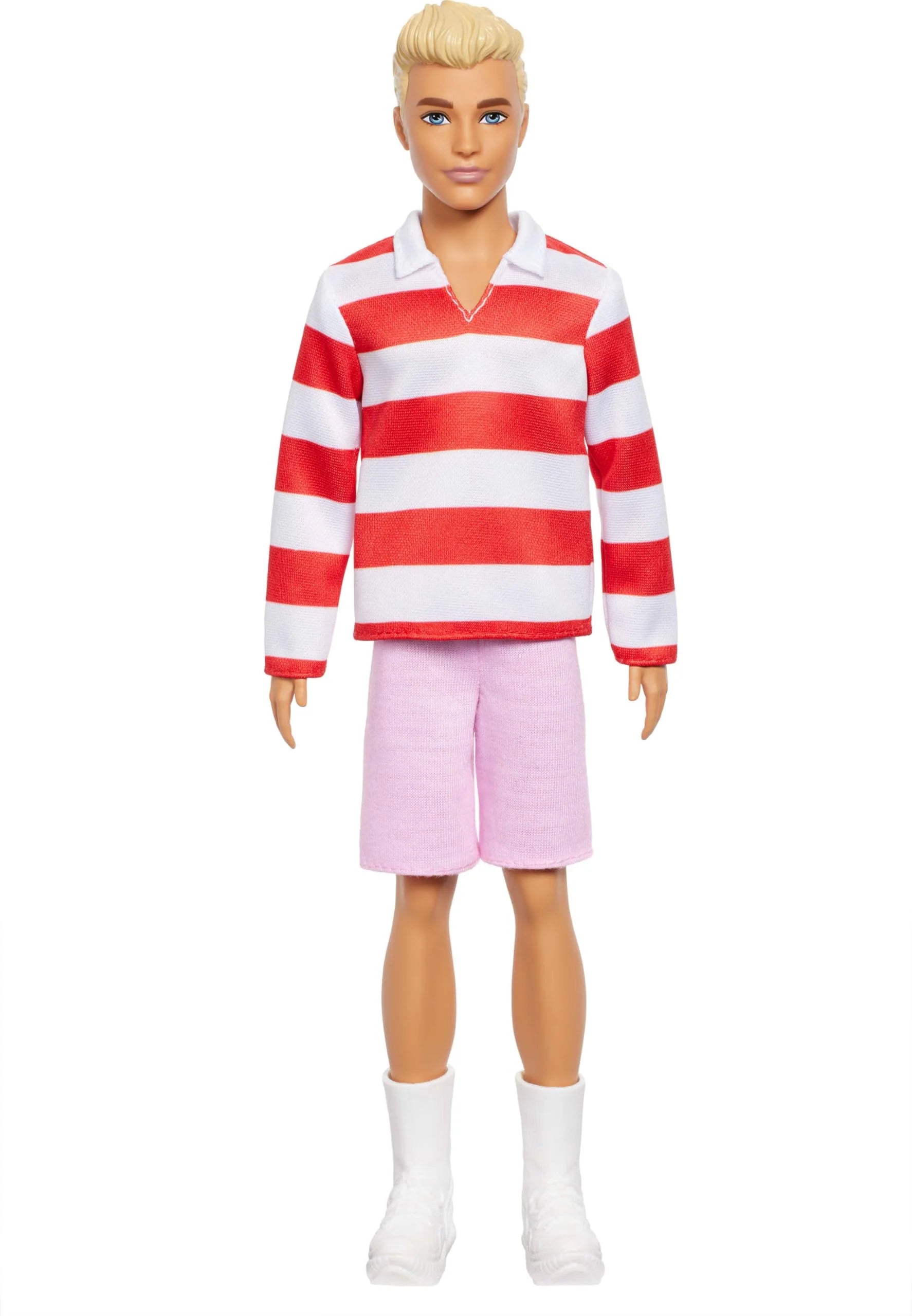 Mattel Barbie Fashionistas Ken #241 Bambola Ken Biondo con Polo a Righe Rosse