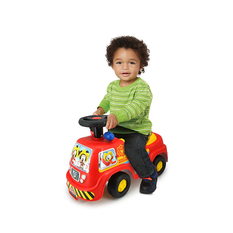 primi passi Camion con suoni e lampeggianti. Vano portagiochi sotto la sella.. Dimensioni prodotto: 25x51x33cm. Confezione: tray.  2 batterie tipo AA incluse. Codice a barre: 8054188276025. Adatto da 1 anno in su. Kiddieland. Licenza Disney.