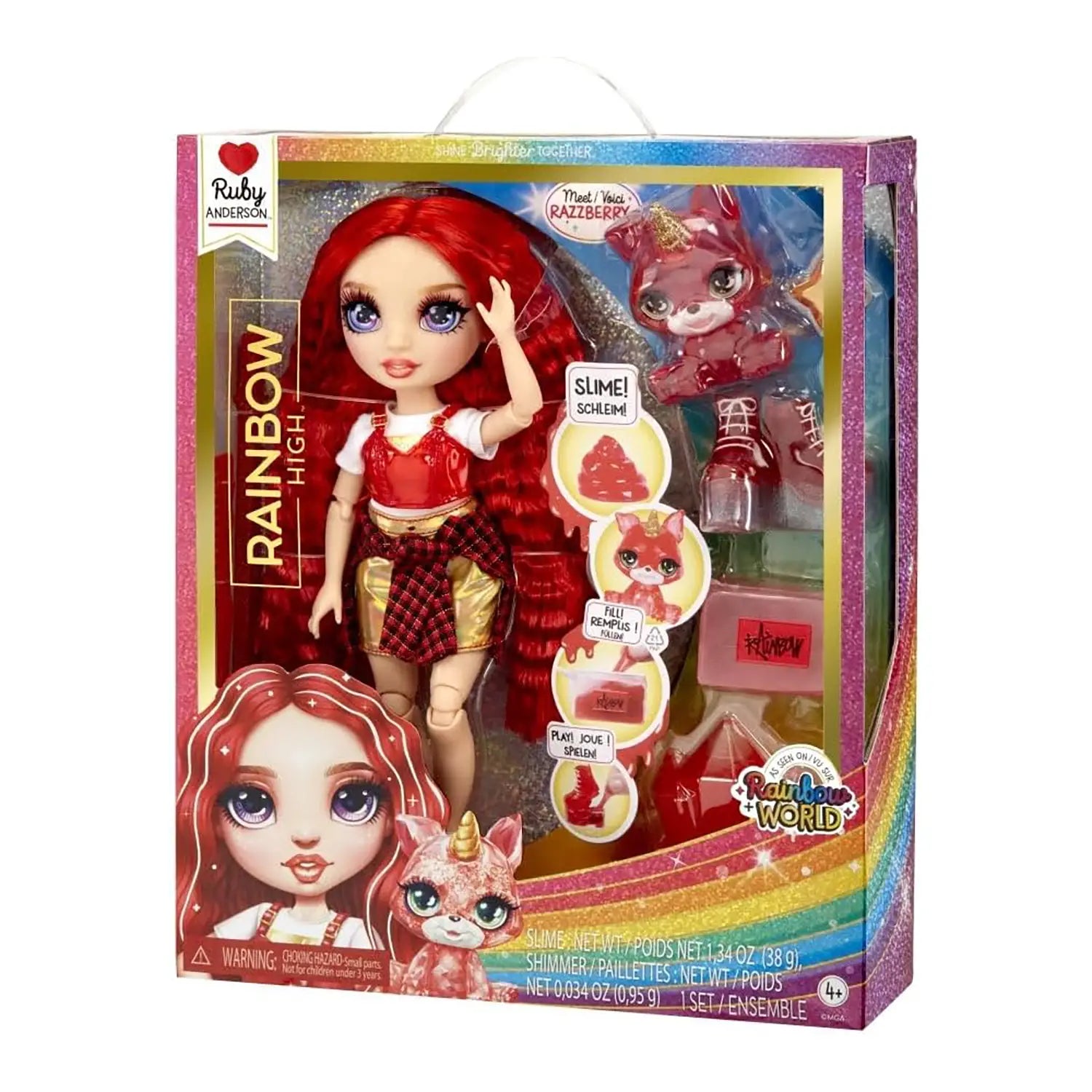 Rainbow High Fashion Doll with Slime Kit & Pet - Ruby (Rosso) - Bambola scintillante da 28 cm con Slime scintillante fai da te, Animale Magico e Accessori Moda - Età 4-12 anni
