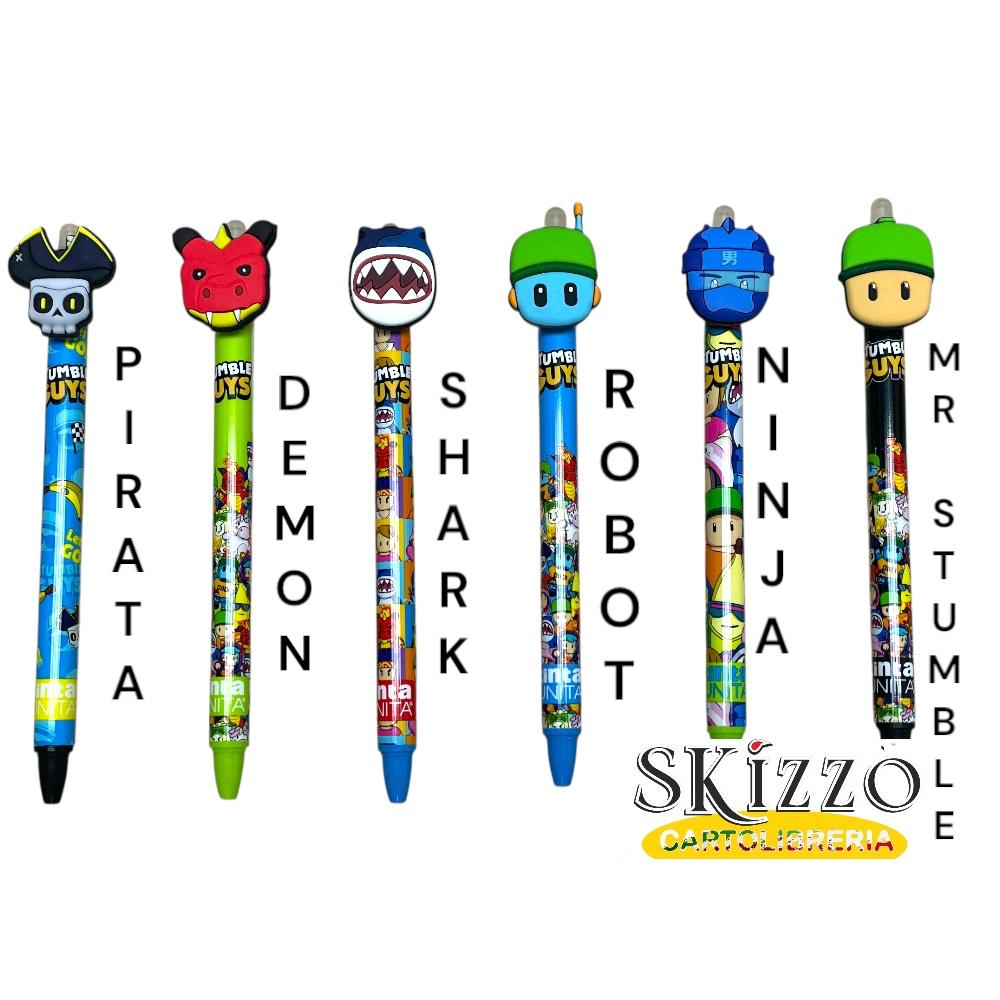 Penna cancellabile della nuova linea scuola 2025/2026 di Stumble Guys by TintaUnita dotata di meccanismo a scatto tramite topper 3D personalizzato ed inchiostro a base gel termosensibile che garantisce una scrittura scorrevole ed uniforme senza lasciare traccia dopo averlo cancellato.