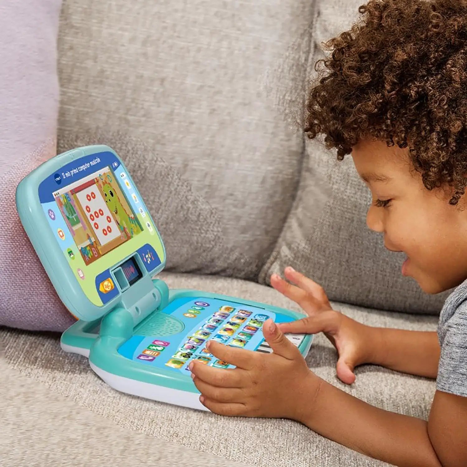 DUE MODALITÀ DI GIOCO: grazie al suo schermo 2 in 1, Il mio primo computer musicale permette di scoprire 2 divertenti modalità di gioco; basta spostare il selettore sotto lo schermo per scegliere la modalità di gioco "Impariamo divertendoci" e "Tempo di musica" MODALITÀ IMPARIAMO DIVERTENDOCI: in questa modalità il bambino scopre le lettere, i loro suoni e la parola associata; impara i numeri e inizia a contare fino a 10 e ascolta anche frasi divertenti sul tempo e sulla routine quotidiana MODALITÀ MUSICALE: con la modalità a Tempo di musica, il bambino scopre gli animali, i colori e gli strumenti musicali a ritmo e ascolta tante melodie orecchiabili COMPUTER COMPLETO: grazie a 10 tasti del pianoforte, una tastiera ABC e i suoi 26 tasti delle lettere, 4 applicazioni di gioco, 3 pulsanti di regolazione e una maniglia per il trasporto per portare comodamente il computer bambini ovunque tu voglia PIENO DI SUONI: il formato giocoso e colorato di questo giocattolo serve per stimolare il bambino insieme a 26 melodie e 2 canzoni...