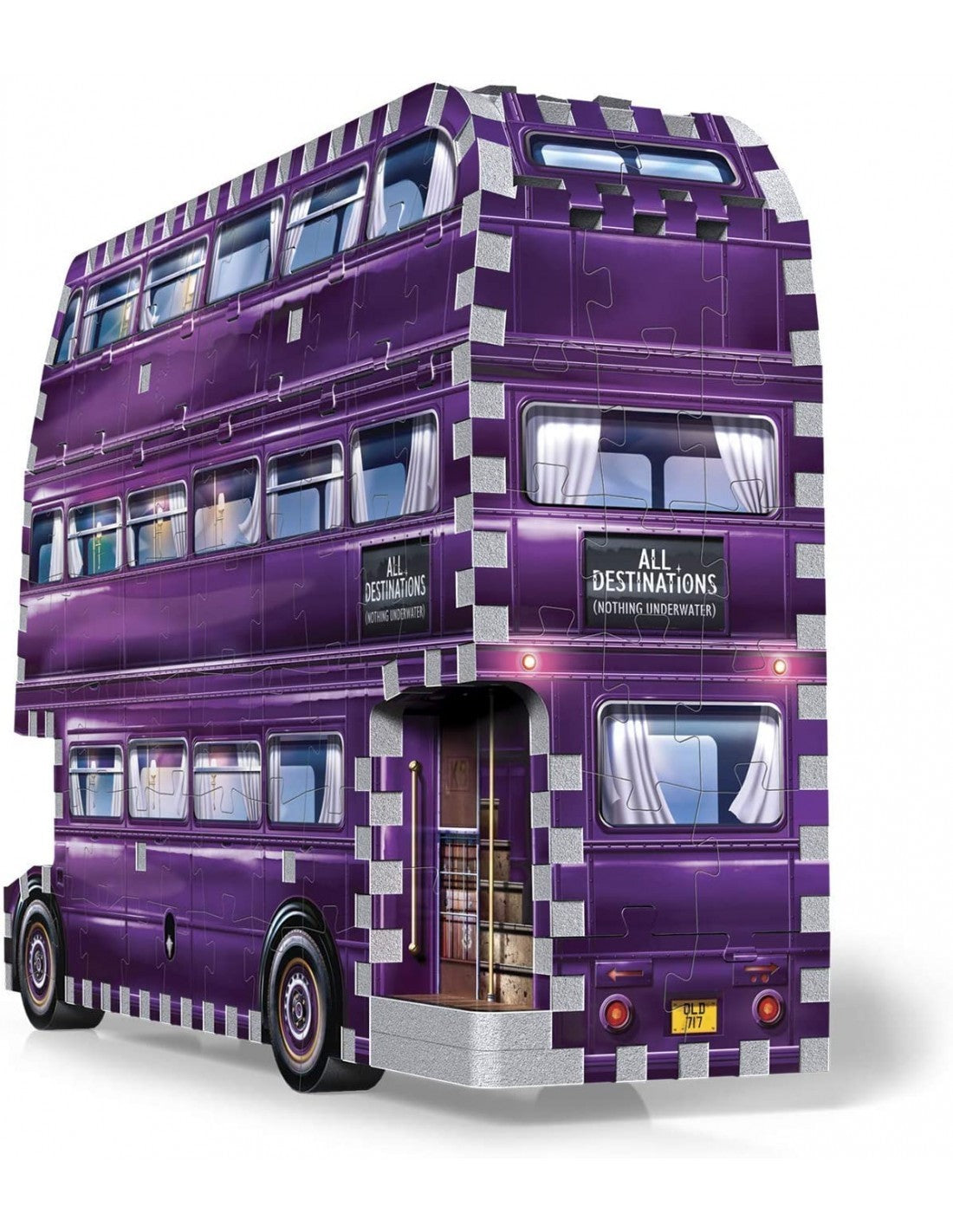 Se sei un mago vagabondo in cerca di un trasporto urgente, sicuro e discreto, tendi la bacchetta dal ciglio del marciapiede e apparirà il Nottetempo. Una volta a bordo, questo bus viola a tre piani si stringerà per passare attraverso gli spazi stretti e schizzerà per farti raggiungere in tempo la tua destinazione! Dimensioni finite: 27 x 7 x19 cm.